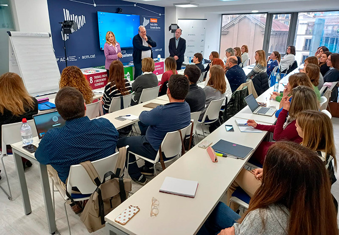 Aquest dilluns 16 de gener a la tarda l’Associació Catalana de Municipis ha donat el tret de sortida a la 7a edició del Postgrau de Gestió de personal i relacions laborals dels ens locals. La secretària general de l’ACM, Joana Ortega, ha fet la inauguració oficial d’aquesta acció formativa en una sessió presencial, que ha tingut lloc a l’aula de formació de l’ACM. Ortega ha remarcat que “la formació és estratègica per a l’ACM i pretén donar-vos excel·lència en un entorn laboral canviant”. També ha agraït als alumnes el temps que destinen a la formació contínua perquè “és temps que treieu de la vostra vida personal i familiar” i per això els ha encoratjat a “gaudir de la formació”. Finalment, ha posat èmfasi en la importància de tenir una visió global del món local per afrontar els reptes, necessitats i problemàtiques.