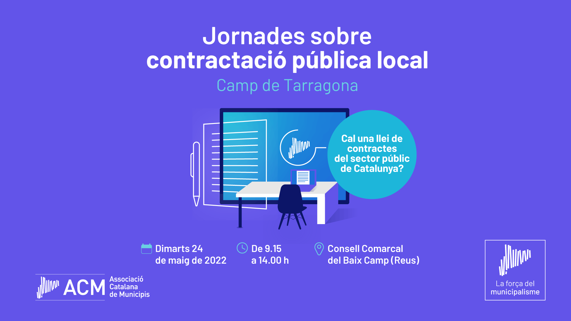 L’ACM torna a organitzar les Jornades de contractació pública, destinades als ens locals de Catalunya, en format presencial. En total, seran 7 sessions que començaran el pròxim 24 de maig a Reus i que recorreran les set demarcacions de Catalunya entre els mesos de maig i juny. Per participar en les sessions, cal inscripció prèvia.