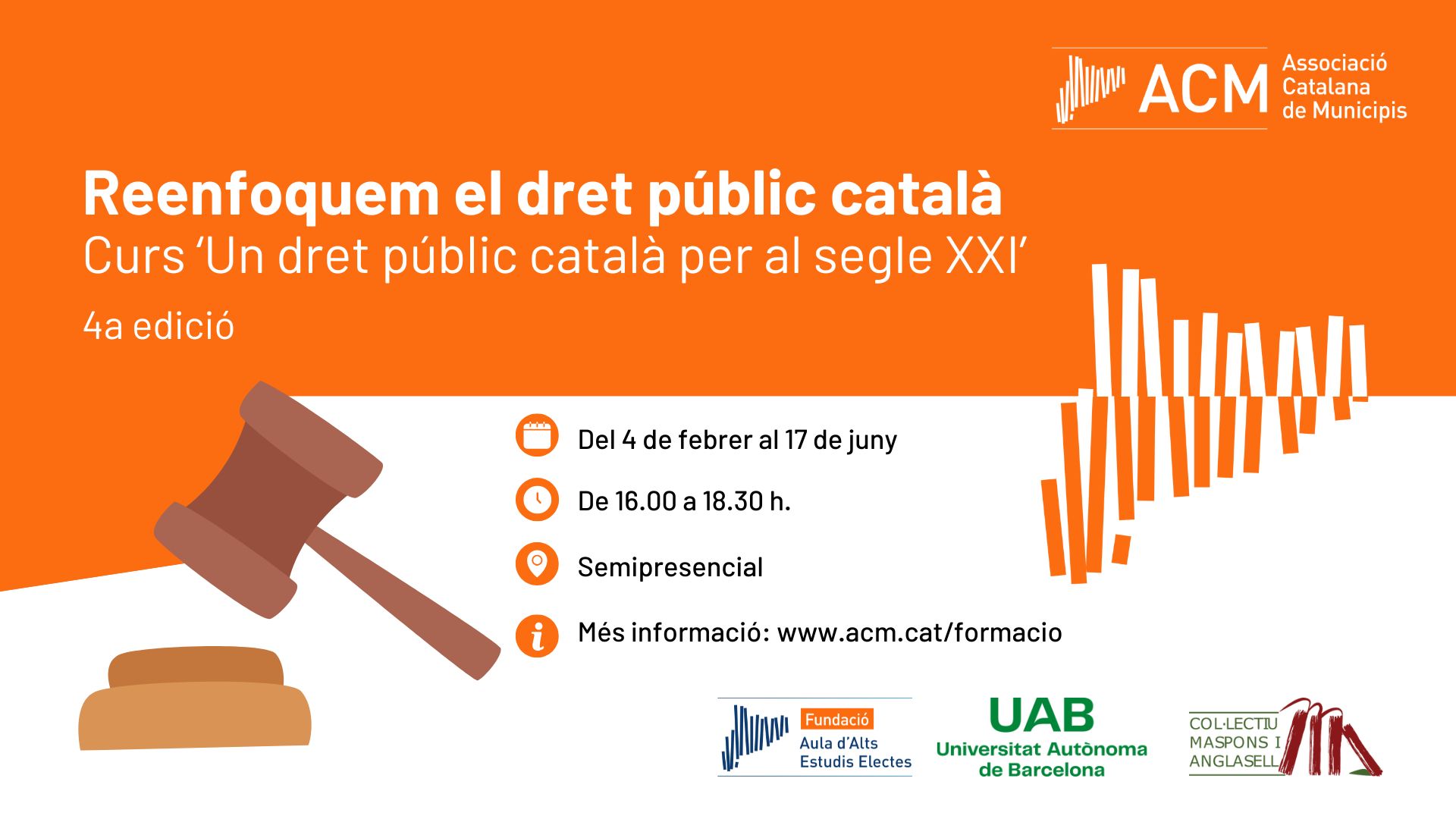 L’Associació Catalana de Municipis i Comarques ofereix formació específica a tècnics de l’administració local i a electes locals a través de l’àrea de formació de l’ACM i del Acord per a la Formació Contínua dels Empleats de les Administracions Públiques (AFEDAP).